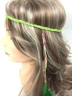 S_600024E - IBIZA LOOK geflochtenes Haar BAND MIT FEDERN GRÜN (1.)