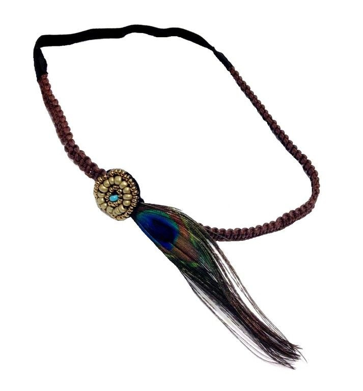 S_600490 - Elastisches Haarband mit Perlen und PFAUFEDER (1)