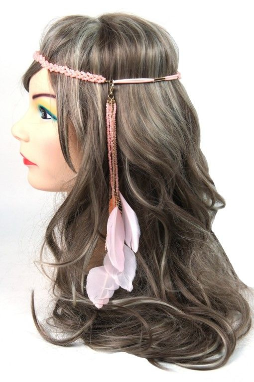 S_2912005 - IBIZA LOOK Haarreif mit Perlen und Federn SALMON (1.)