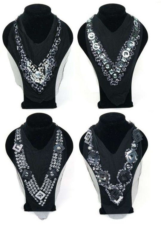S_87137 - Schöne Halskette / Schal mit Nieten und Perlen - BLACK (8st)