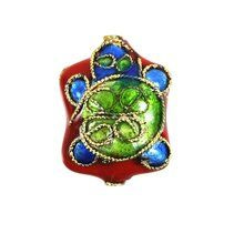 S_32906B - CLOISONNE BEADS Grün / Blau / RED TURTLE 18 MM. (6 Stk.)