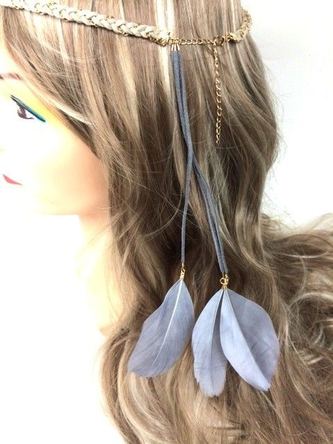 S_600028H - IBIZA LOOK geflochtenes Haar BAND MIT FEDERN GREY (1.)