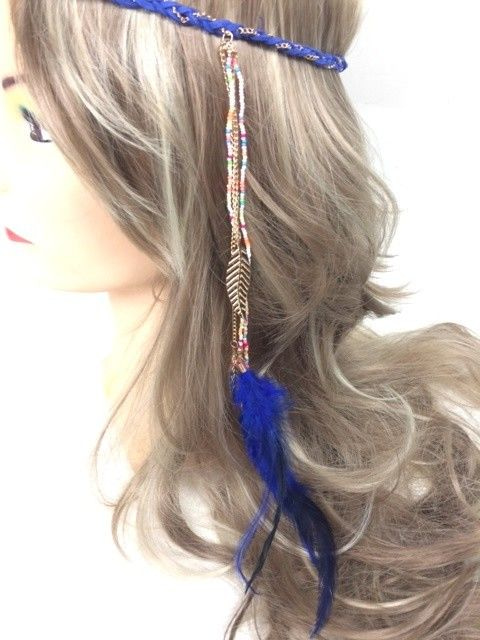 S_600024D - IBIZA LOOK geflochtenes Haar BAND MIT FEDERN DARK BLUE (1.)