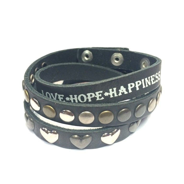 S_600488 - Lederarmband mit Nieten 3 DOUBLE BLACK / GREY (1)
