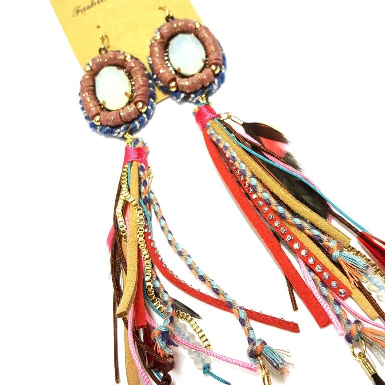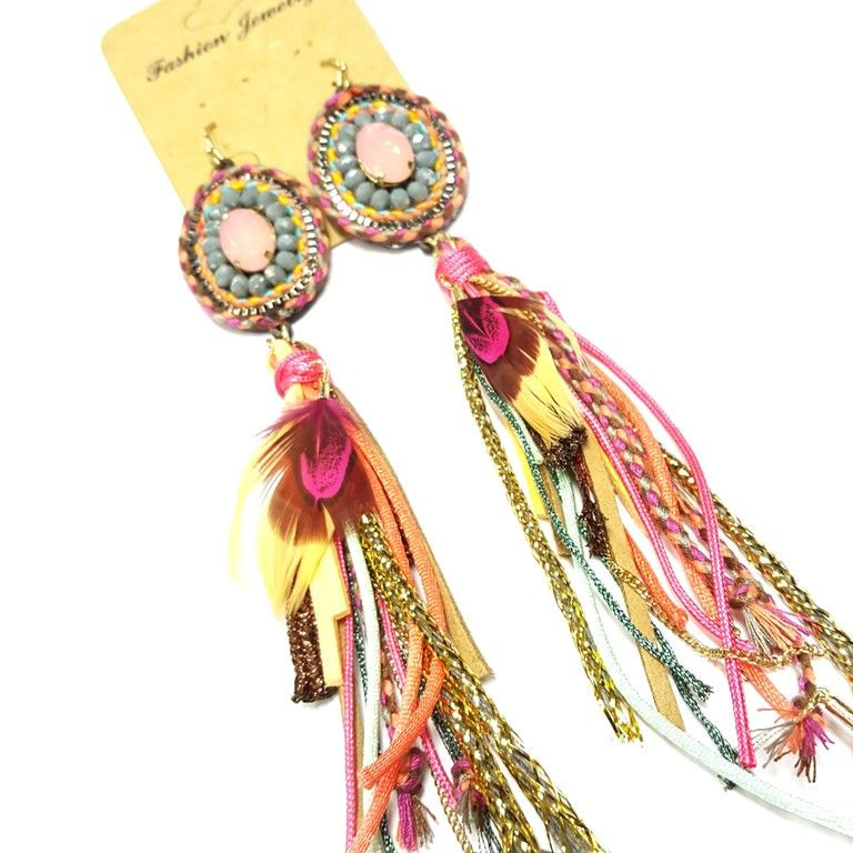 S_6445305 - Lange Ohrringe Federn & Zöpfe - MODEL Rosa / Blau (1)