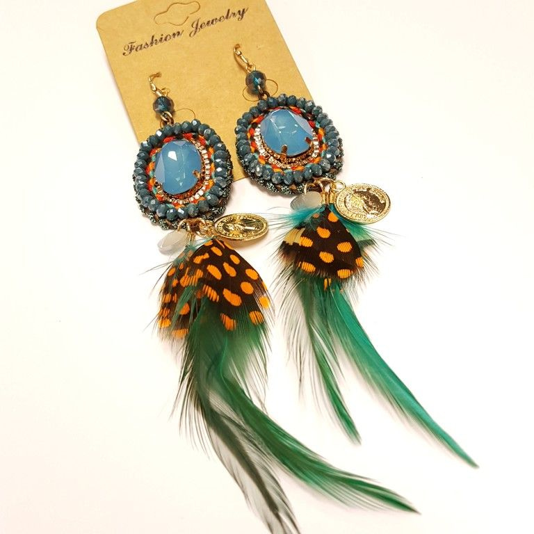 S_6448200 - Lange Ohrringe Federn & Mints - MODEL blau / grün (1)