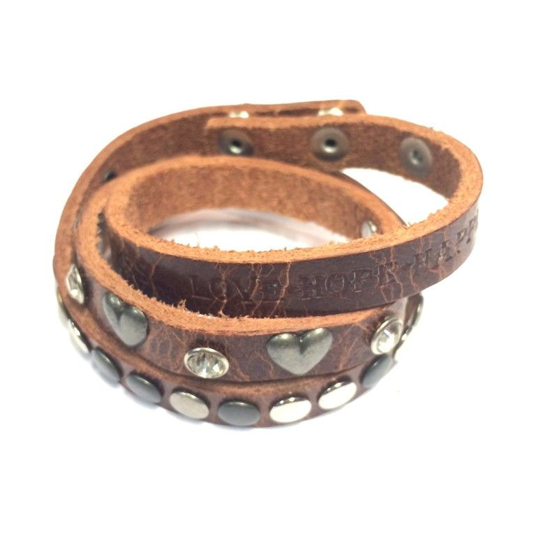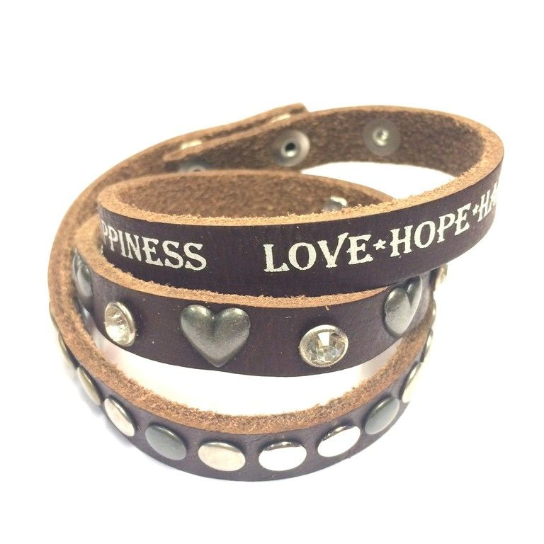 S_600488D - Lederarmband mit Nieten / STRASS 3 DOUBLE DARK BROWN (1)