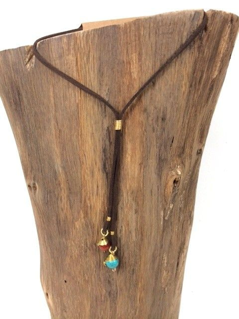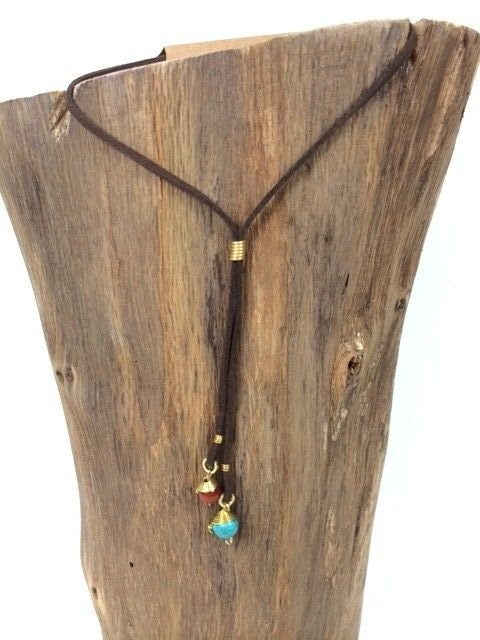 S_600208A - Handgemachte Halskette mit blauem Stein IBIZA ORIGINALE Rot / Braun (1.)