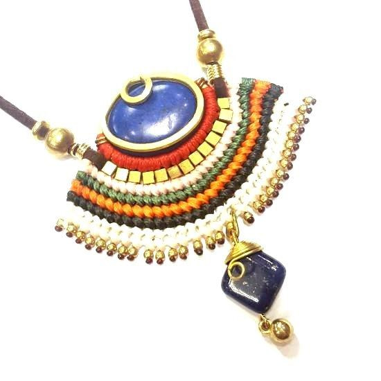 S_600205B - Handgemachte Halskette mit blauem Stein IBIZA ORIGINALE ORANGE / BLAU (1.)
