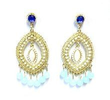 S_600403E - LUXUS Ohrringe mit blauen Schaufeln und STRASS BLAU (1.)