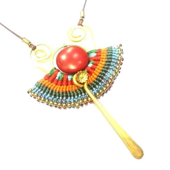 S_600232D - HANDMADE HALSKETTE MIT GREEN STONE IBIZA ORIGINALE GRÜN / ROT (1.)
