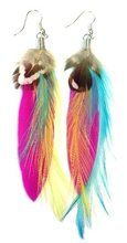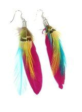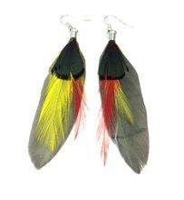 S_600037M - IBIZA MIT-Feder-Ohrringe LOOK GRAU / ROT / GELB (1.)