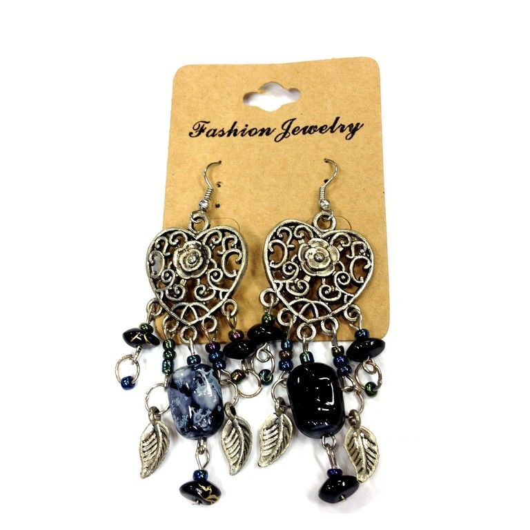 S_600036E - IBIZA MIT-Feder-Ohrringe LOOK SCHWARZ (1.)