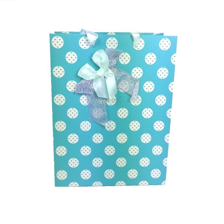 S_811975BA - LUXE PACK TASCHE BLUE DOTS kleinen Herzen 26x32cm (12st)