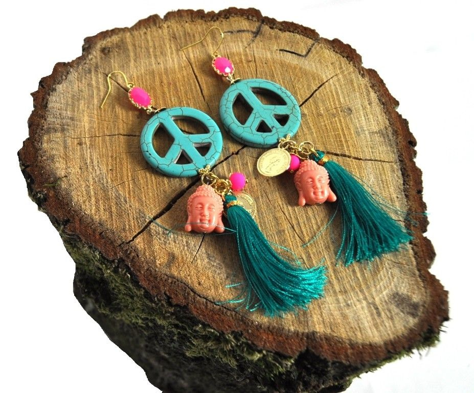 S_5670400 - IBIZA LOOK OHRRINGE TÜRKIS FRIEDEN / SALMON BUDDHA (1.)