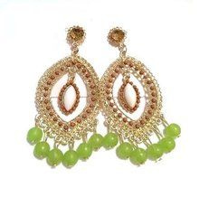 S_600403F - LUXUS OHRRINGE MIT GRÜNEN STRASS Schaufeln und BROWN (1.)
