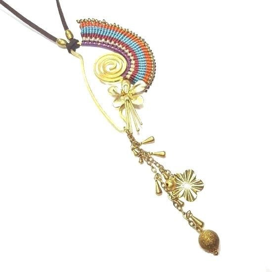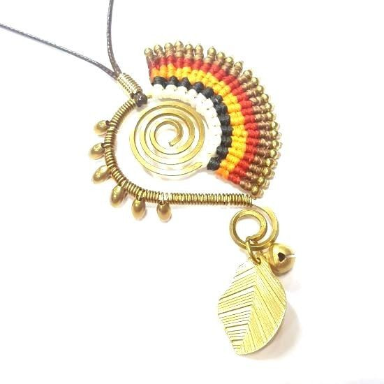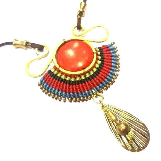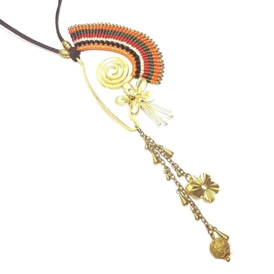 S_600223C - IBIZA ORIGINALE handgemachte Halskette MIT BLATT ORANGE / ROT (1.)