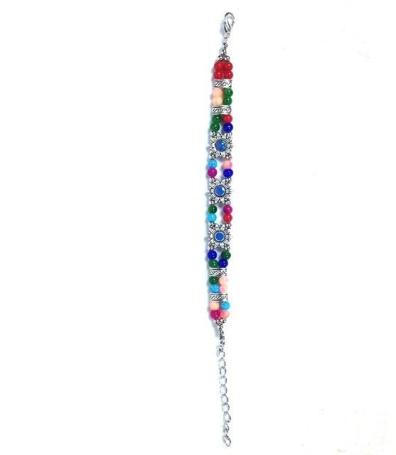 S_600620H - Armband silber LOOK / FARBIGE MIT BLUME (12st)