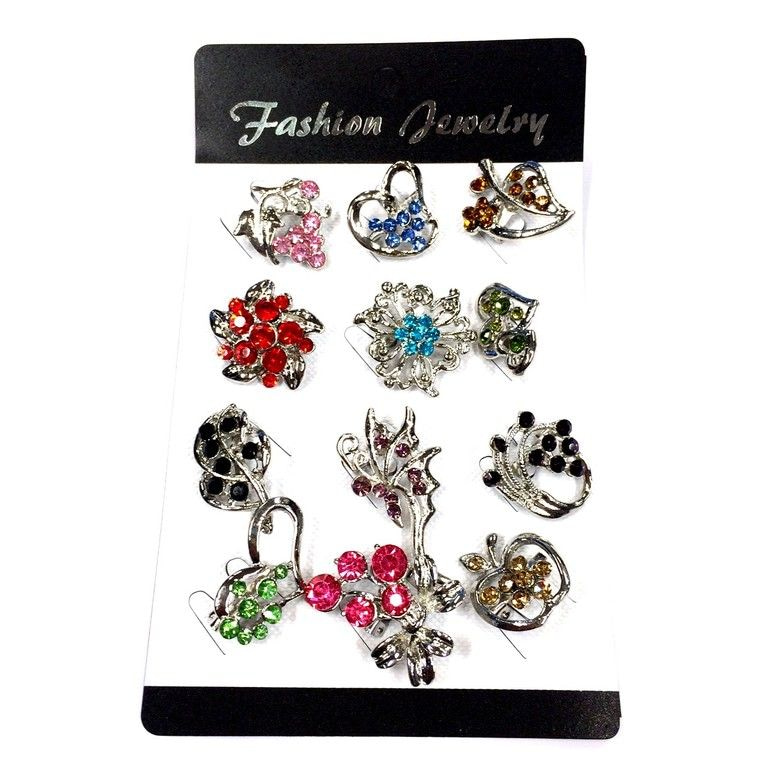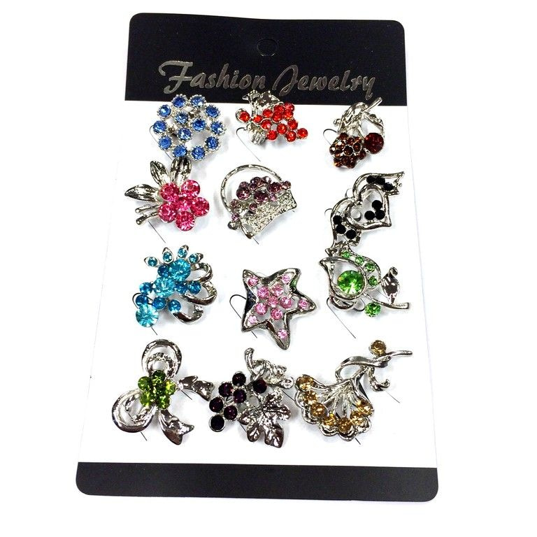 S_75296 - Brosche Silber STRASS MIX gemischten Farben (12st)
