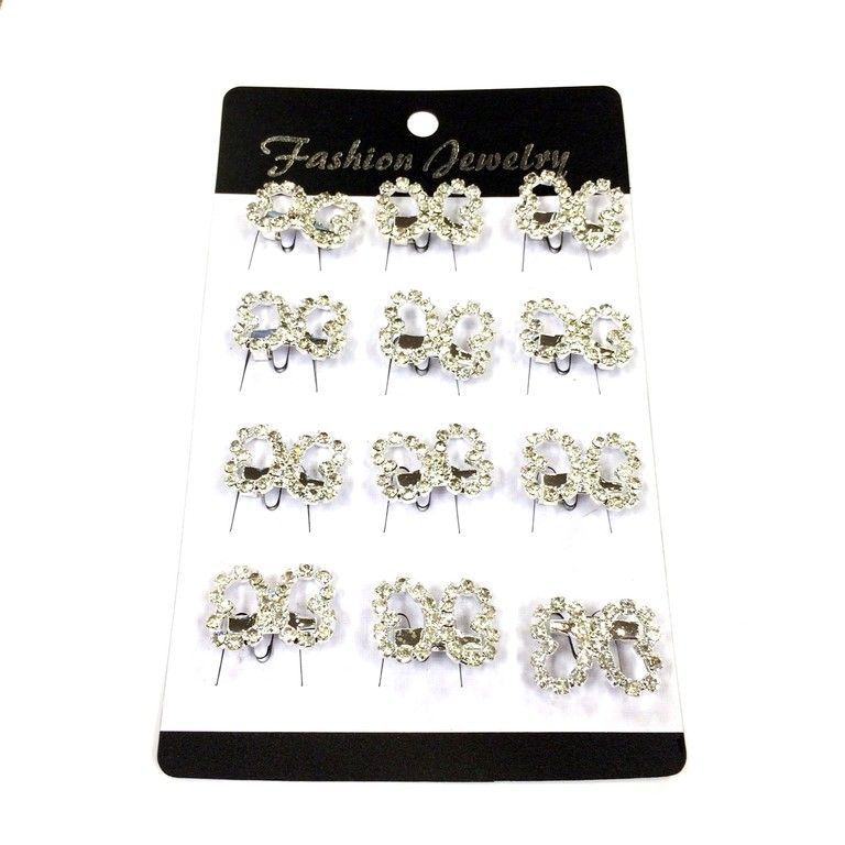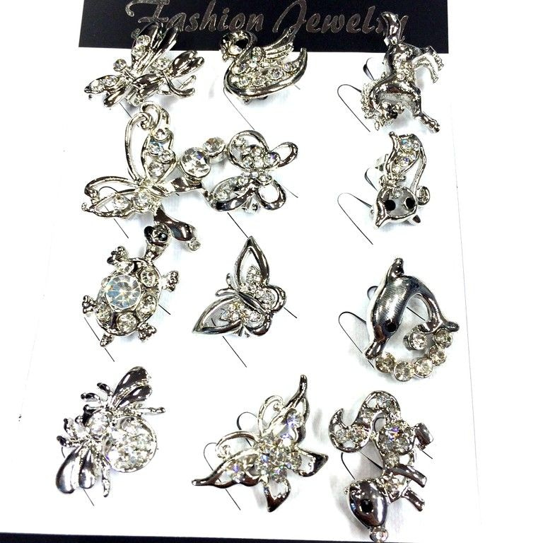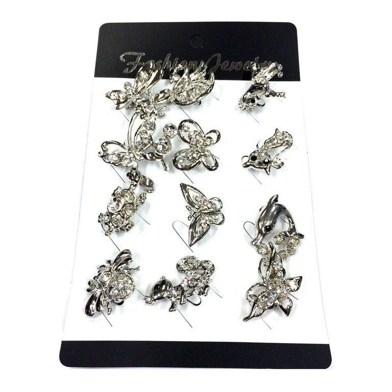 S_75309 - Brosche Silber Rhinestone-Schmetterlings MIX (12pcs)