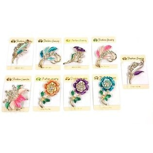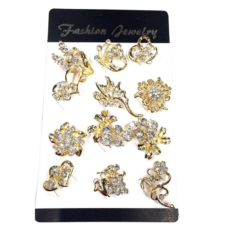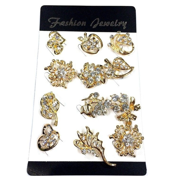 S_75326 - Strassbrosche GOLD mit verschiedenen (12pcs)