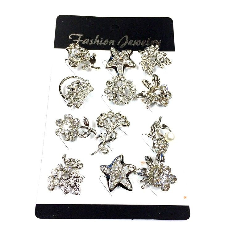S_75310 - Brosche Silber STRASS MIX VIS (12pcs)