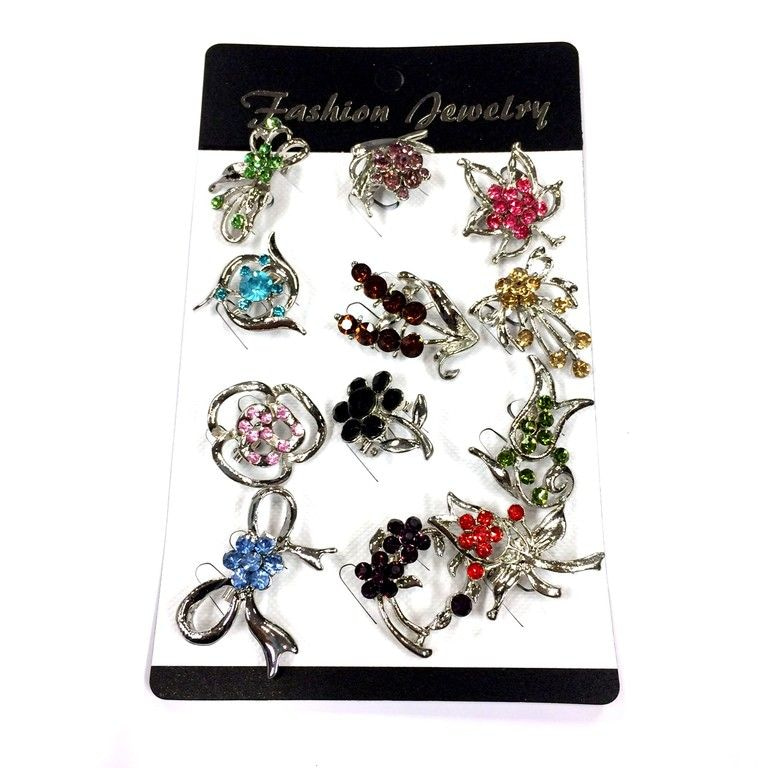 S_75291 - Brosche Silber STRASS MIX gemischten Farben (12st)