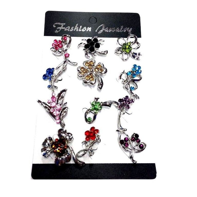S_75308 - Strassbrosche SILBER MIT BLUMEN MIX (12pcs)