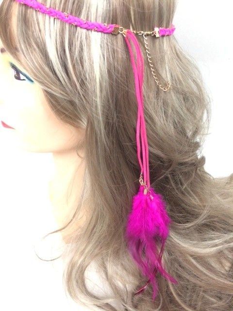 S_600023B - IBIZA LOOK geflochtenes Haar BAND MIT FEDERN FUCHSIA (1.)