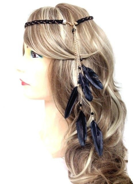 S_600114F - IBIZA LOOK BRAIDED Haarband mit schwarzen Federn (1.)