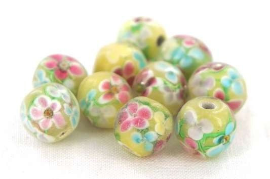 S_32201 - Art.nr: 32201 - Cloisonne Perlen weiß / gelb SHELL (6 Stck.)