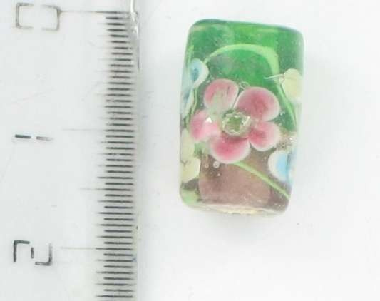 S_40028E - Art.nr: 40028E - Glasperlen GELB / GRÜNE BLUME (6St)