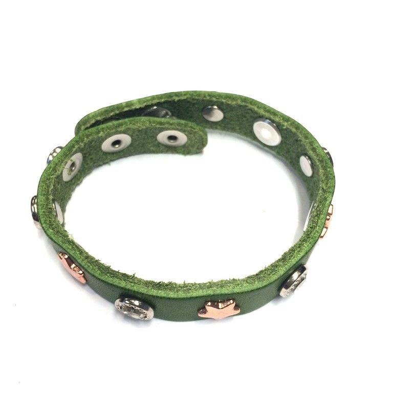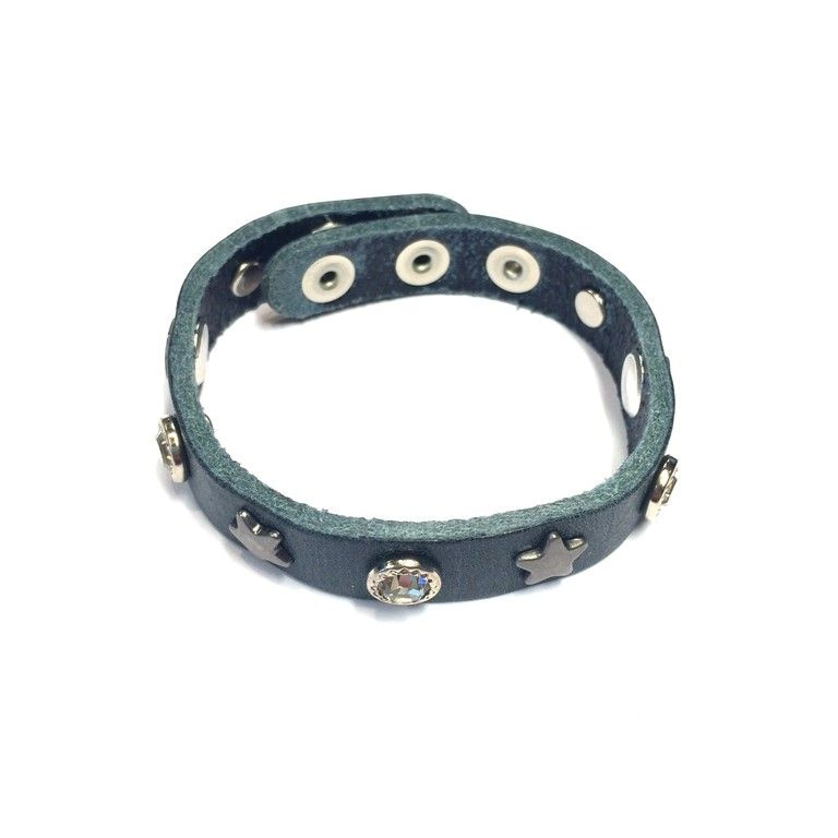 S_600484 - Lederarmband mit Nieten und STRASS STERNE GRÜN (1.)