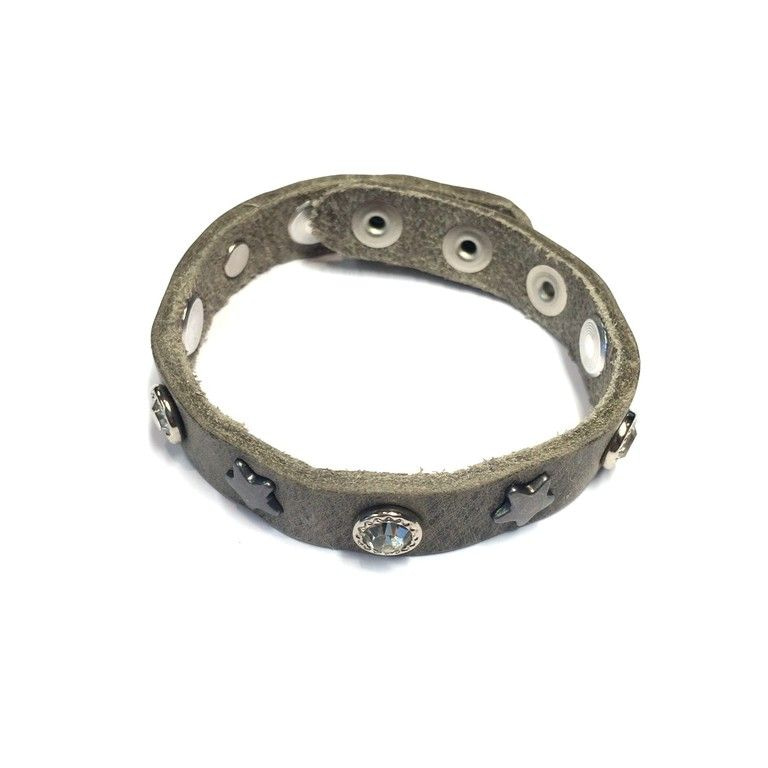 S_600482A - Lederarmband mit Strass / STECKER STERNE GRAU (1)