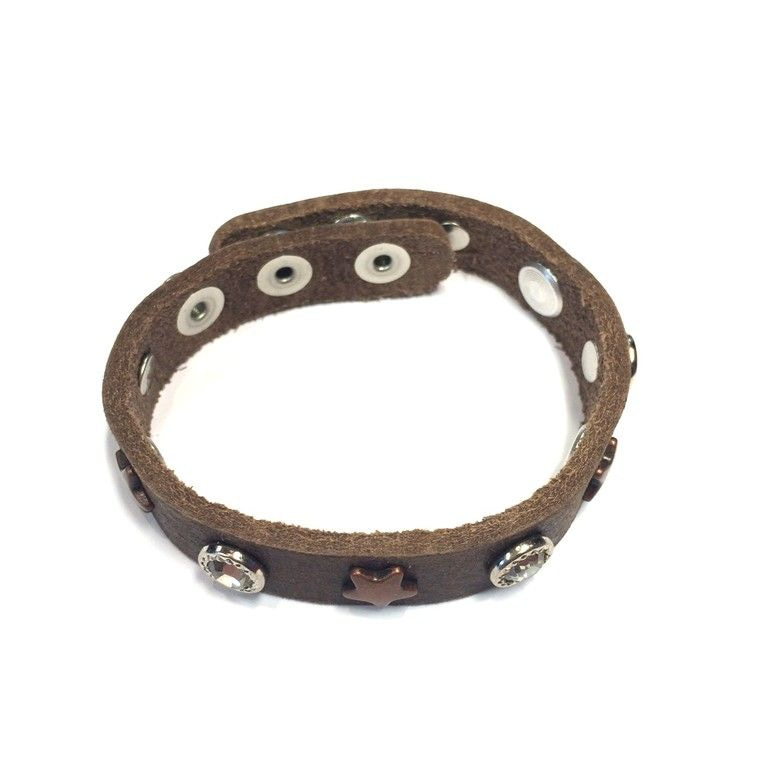 S_600483 - Lederarmband mit STRASS NIETEN BROWN UND STERNE (1)