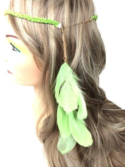 S_600027C - IBIZA LOOK geflochtenes Haar BAND MIT FEDERN GRÜN (1.)