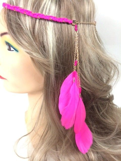 S_600022D - IBIZA LOOK geflochtenes Haar BAND MIT FEDERN FUCHSIA (1.)