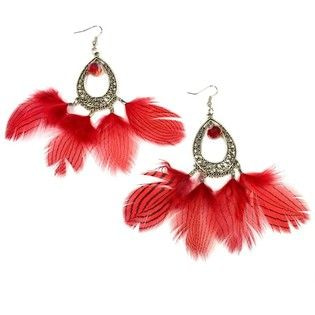 S_600754A - OHRRINGE CHIC MIT FEDERN rote Perle (1)