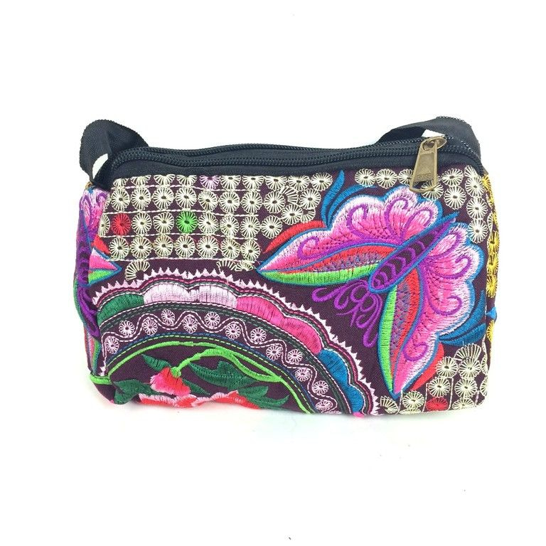 S_812013E - HAND / Umhängetasche BUTTERFLY / FLOWER AUBERGINE MIT SAHNE (1)