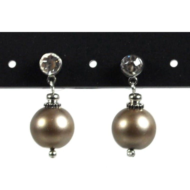 S_799947 - Perlen-Ohrringe mit Strass - COGNAC (4paar.)