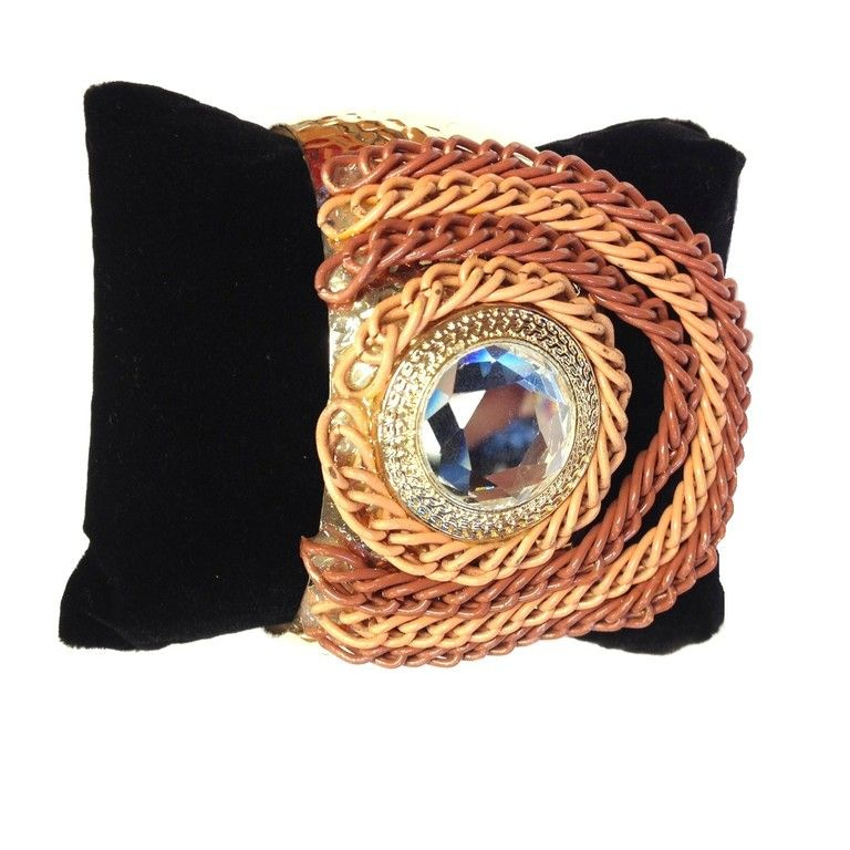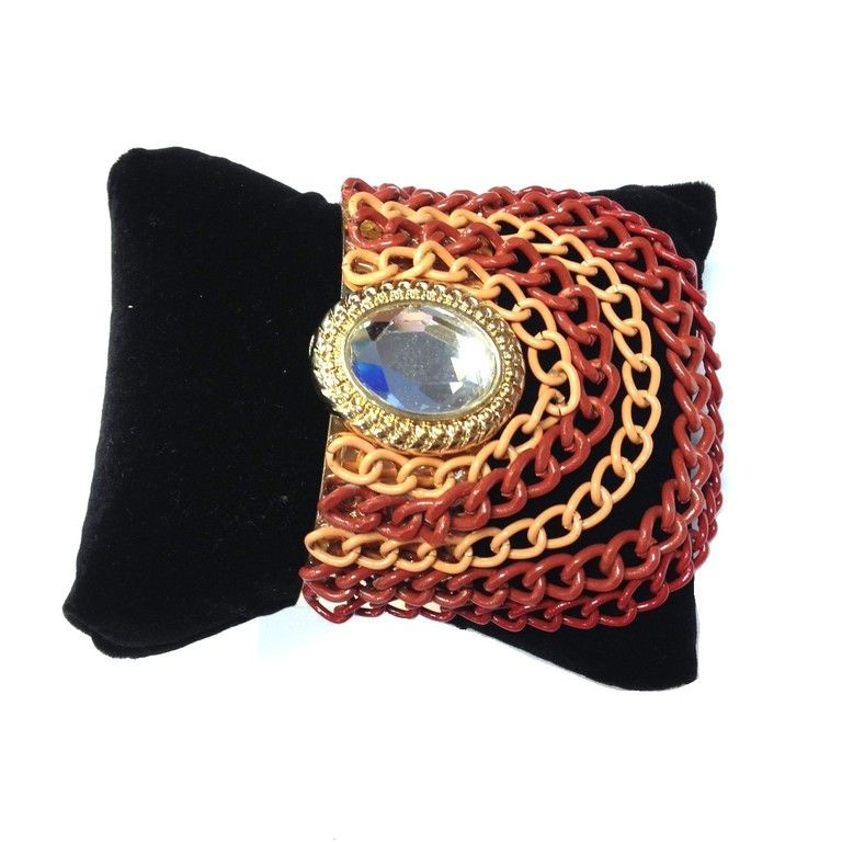 S_600422 - LUXE breites Armband GOLD / BRAUN MIT Ketten (1.)