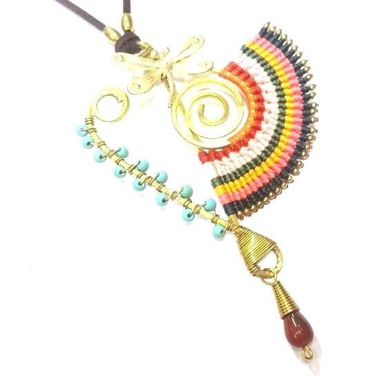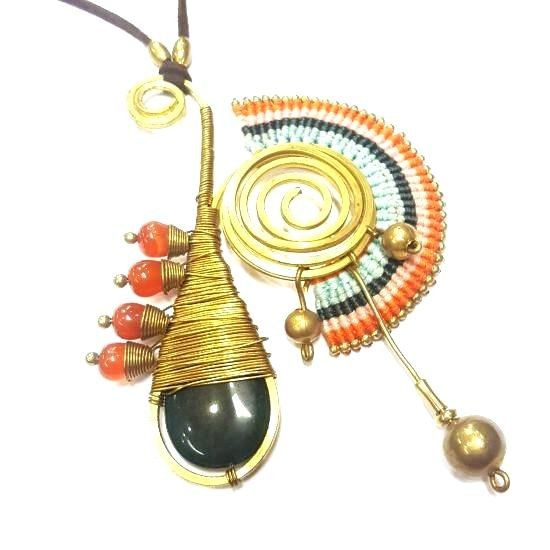 S_600232C - HANDMADE HALSKETTE MIT GREEN STONE IBIZA ORIGINALE ORANGE / GRÜN (1.)