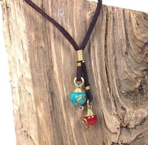 S_600206B - Handgemachte Halskette IBIZA MIT ORIGINALE REDSTONE blau / braun (1.)
