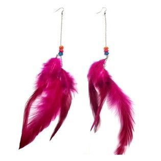 S_600785A - Ohrringe mit 3 Federn und Perlen FUCHSIA (1.)