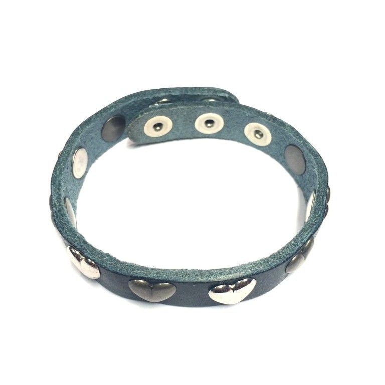 S_600487B - Lederarmband mit Nieten Matt / Glanz BLUE HEARTS (1)