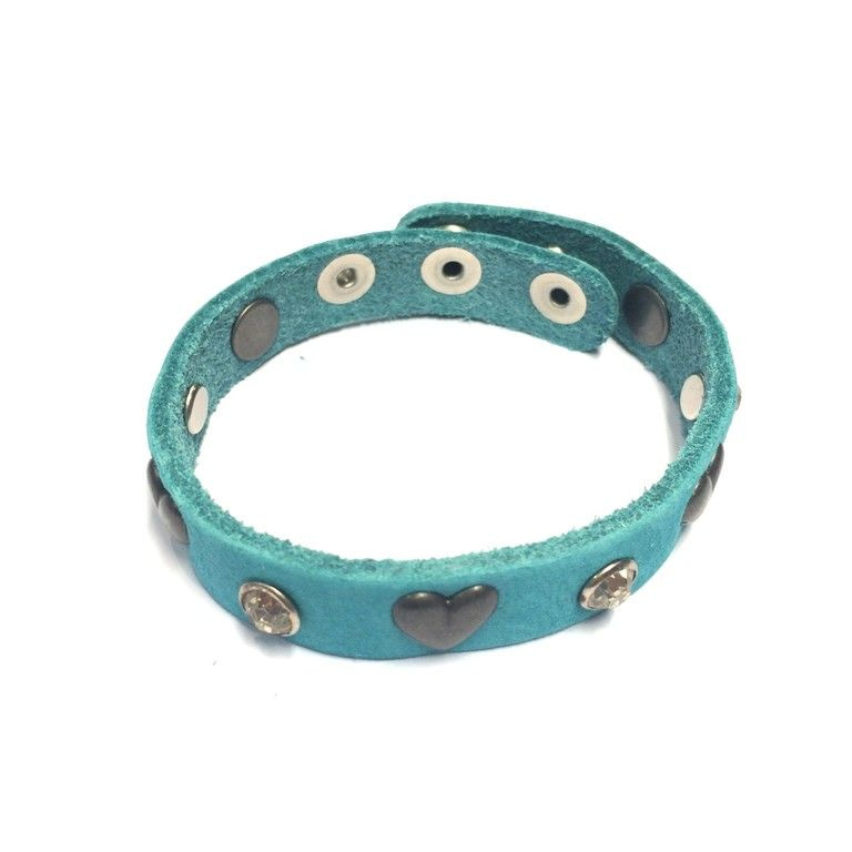 S_600486D - Lederarmband mit Nieten und STRASS AQUA BLUE HEARTS (1)