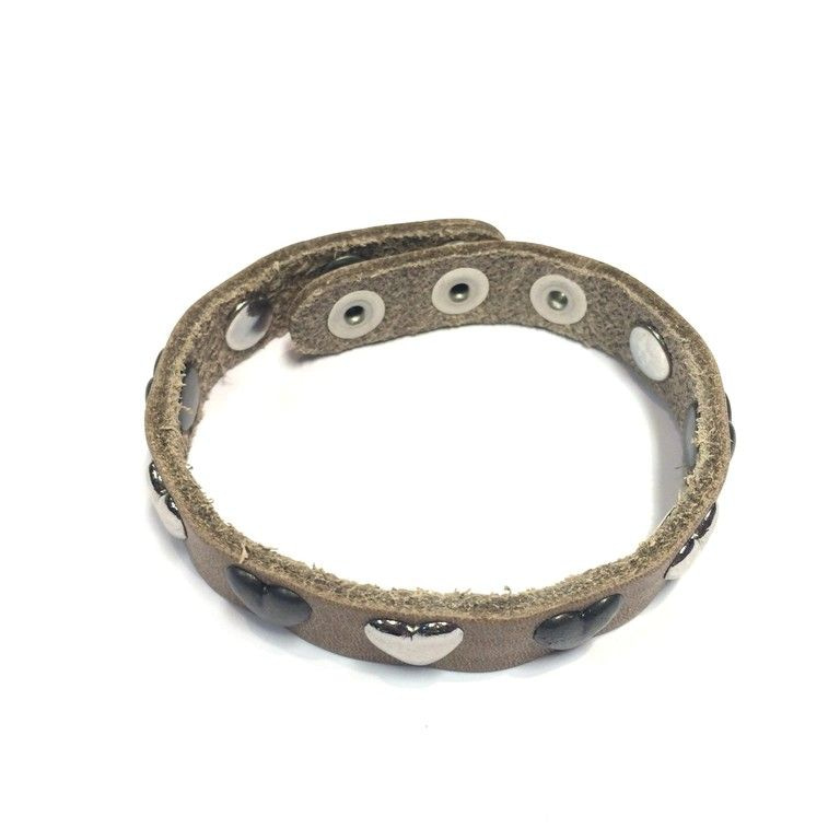 S_600487C - Lederarmband mit Nieten Matt / Glanz-HERZEN TAUPE (1)