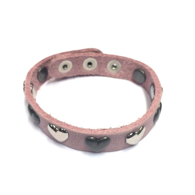 S_600486C - Lederarmband mit Nieten und STRASS HERZEN Hellgrau (1)