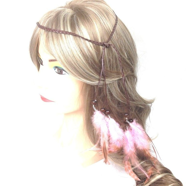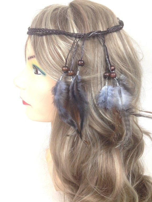 S_600116A - IBIZA LOOK Haarband / FEDERN HALSKETTE BROWN (1.)
