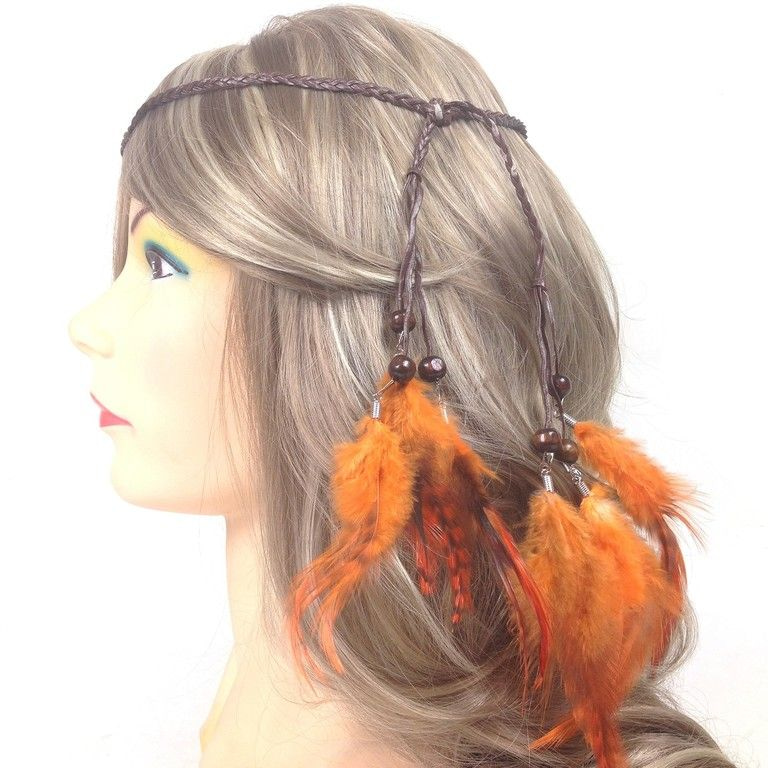 S_600116J - IBIZA LOOK Haarband / Halskette orange Federn (1.)